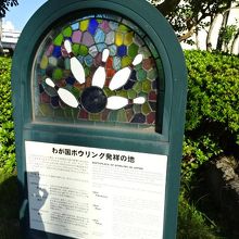 日本のボウリングの発祥の地と伝わる場所で、説明板のついたモニュメントが建てられています。中華料理の名店・四海楼の前にあり、路面電車の電停からグラバー園に向かう途中にあって気軽に寄れます。時間を取られるわけでもないので、ちょっと足を止めて読んでみるとよいでしょう。