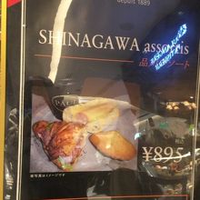 小腹が空いたので、パールでコーヒーとパンを食べようと行ったら、ドカーンと看板にエキュート品川限定 品川アソート¥895 を発見。お得そうなのでこちらを注文しました。レジの横には実物の紙コップコーヒーとパンが展示されており分かりやすくて親切だと思いました。