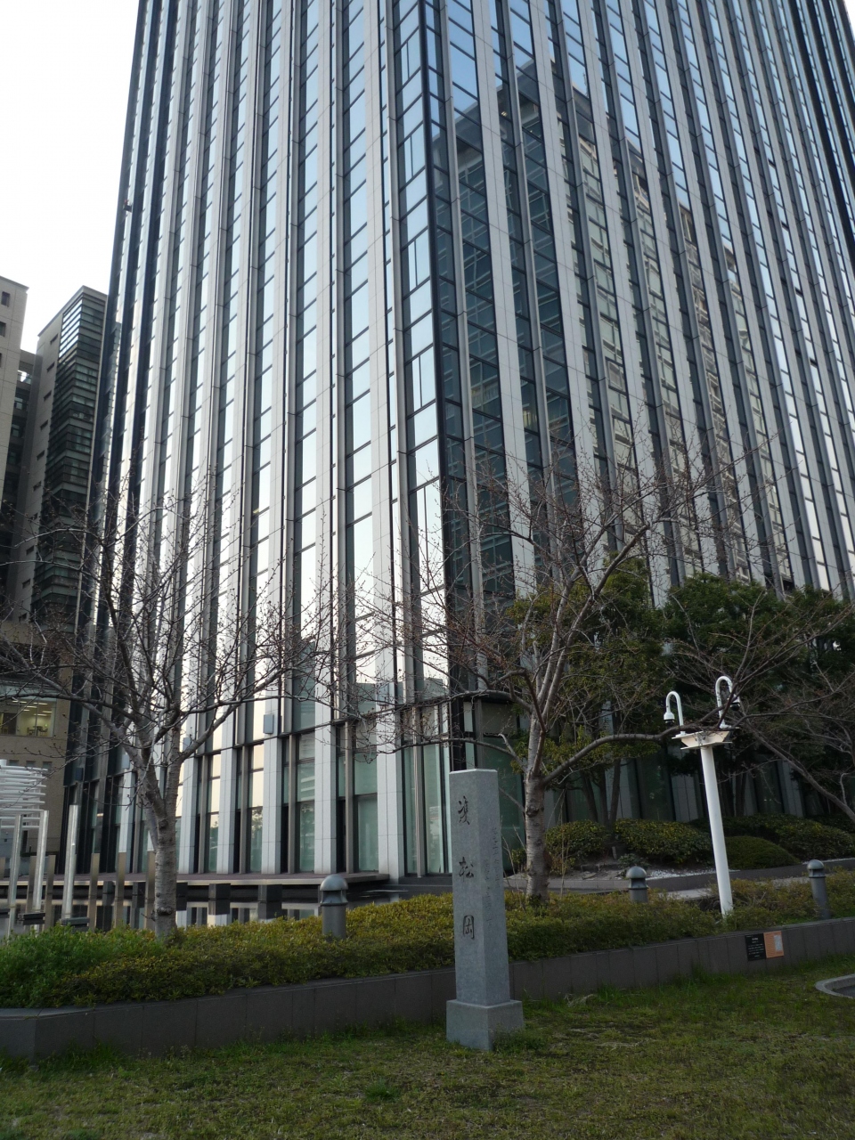 現在は大阪中之島合同庁舎の敷地に石碑が残るだけです。
