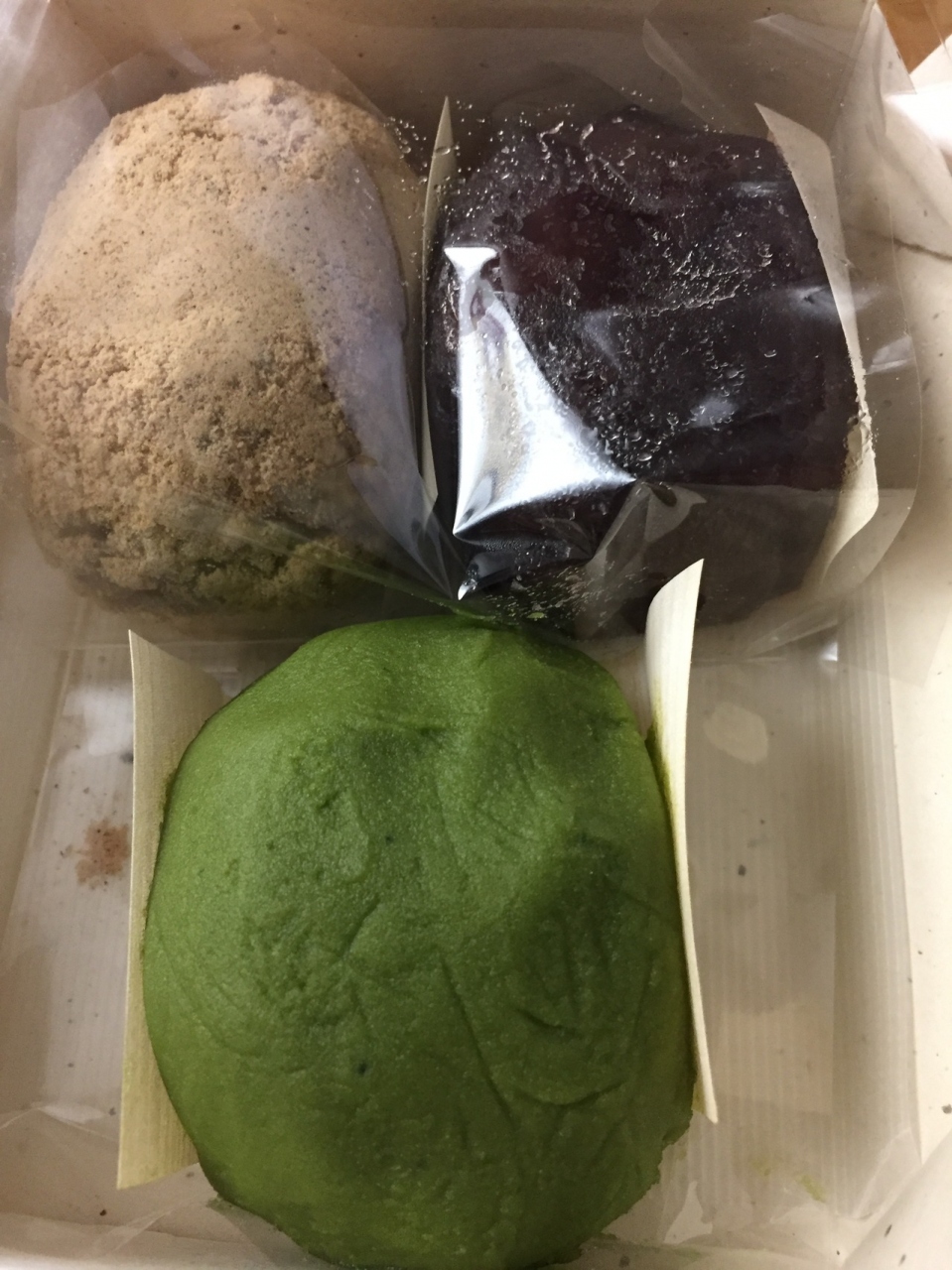 高島屋名古屋で兼ねてから気になっていた仙太郎のぼた餅を購入しました.仙太郎は京都にある和菓子屋さん.今回,粒餡・きなこ・抹茶のぼた餅.粒餡は小豆の香り高くしっかりした味で丁度良い甘さです.抹茶あんは新発売の様ですが,サラサラとして非常に滑らかな印象.何のぼた餅も美味しゅうございました.