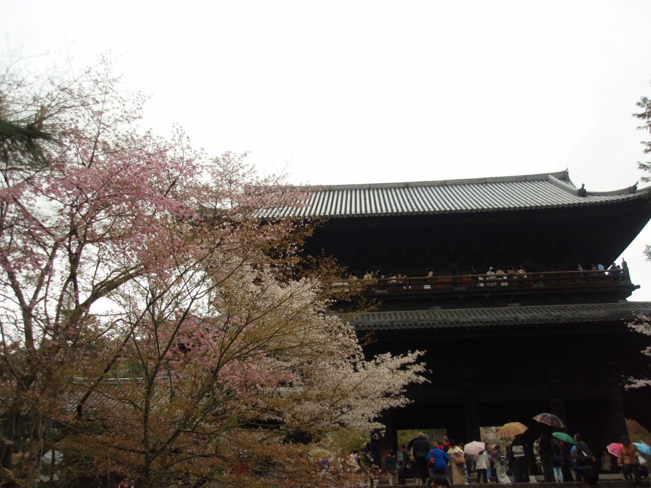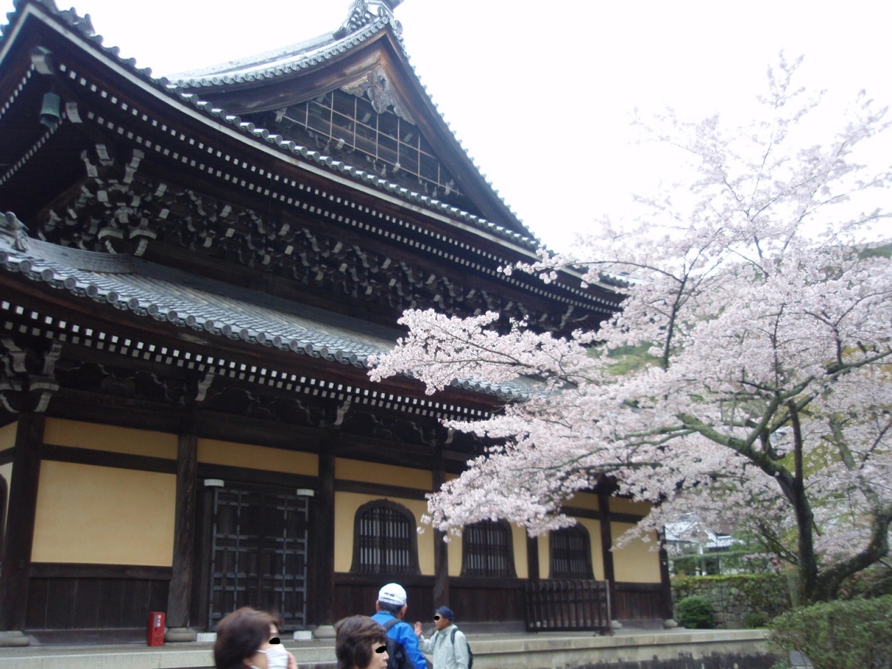 山門から法堂等広い境内に多くの桜の木がありますが、ほとんどの木が葉桜(花と葉が混在)なっていて、満開の木は数本でした。ここより北にある哲学の道や南にあるインクラインの桜は散り始めでしたが、ここや永観堂は葉桜でした。観紅葉の時期は長いですが、観桜の開花時期は短くタイミングが難しいです。人が多すぎるのが気になります