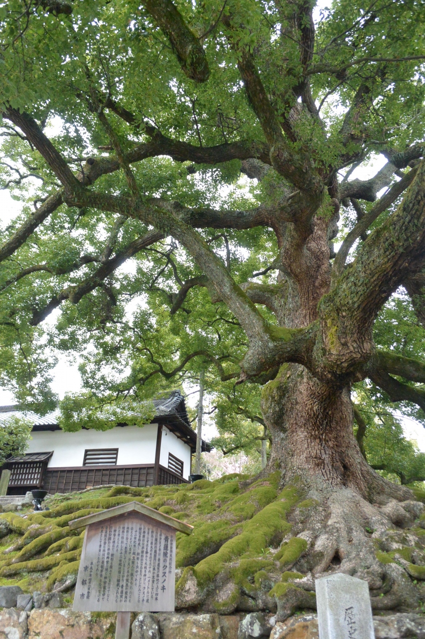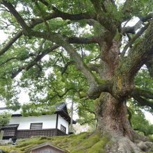 大きな楠は境内にも何本かありますが、なんといっても圧巻は道路沿いにある楠!その根っこ、幹の太さ、枝ぶり、とにかく圧倒されました。それに石垣ぎりぎりのところに生えているので、根が石垣を突き破ったりしないのかなーと思いました。