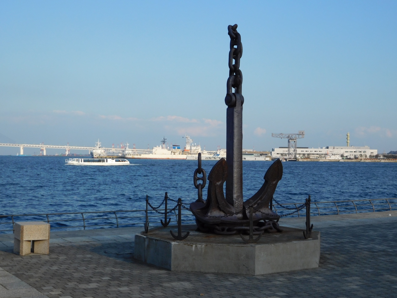 パシフィコ横浜 展示ホールの海側に広がる「臨港パーク」にあります。海に面した場所にあり、横浜ベイブリッジや、行き交う船を背景に写真が撮れる、ちょうど良い記念撮影スポットになっていました。ぐるっと一周してみましたが、特に説明板は見当たりませんでした。とても大きなアンカーのオブジェなので、遠くからでもすぐに見つけやすかったです。
