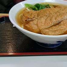 きつねうどんを食べましたが、厚揚げがすごく分厚くて満足~。味付けは甘さは控えめで、醤油味がやや濃いめでした。関西では珍しくきしめんがメインみたいですが、うどん、そばのいずれか選択がOK。出汁がなんとも言えずおいしかったです。