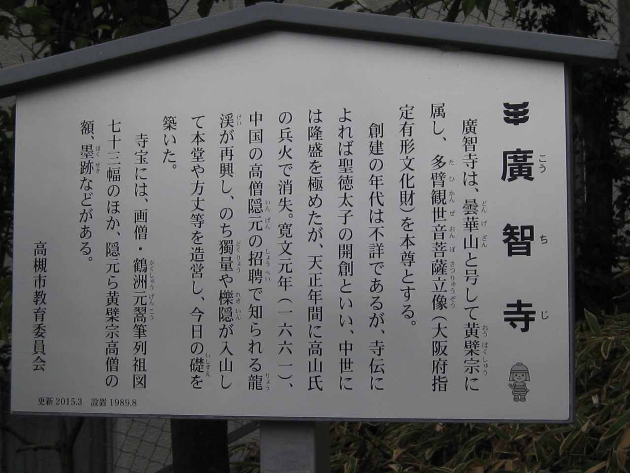 JR高槻駅北口から真っ直ぐの天神さんの横にあるマンションの間の黄檗宗寺院。寺伝では聖徳太子が観世音菩薩をを造り堂宇を創建したと伝えられている。当時は観世音寺と呼ばれ興隆を極めたがキリシタン大名高山右近への反発から堂宇は焼き払われ、後の高槻藩主永井直清により普門寺造営で知られる龍渓性潜が開山となり再興された。このように歴史ある寺院ですが今はマンションに囲まれていて風情がなく残念です。