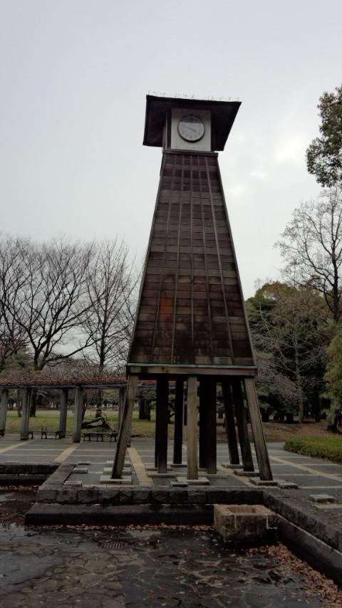 清澄庭園の西隣にある静かな公園、4月1日の午後4時頃、庭園散策のついでに中に入ってみました。入口近くに時計塔があり、意外に広い公園だったのですが、生憎の曇り空で風も出てきて寒くなり、桜の満開もまだ先のようでしたので、早々に引き上げました。きっと1週間以内には満開になって、花見客で大変な賑わいになることでしょう。