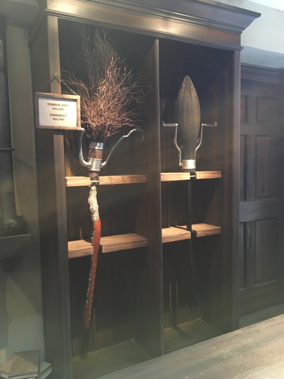 ハリーポッターエリアにあるギフトショップです。ローブやハリーポッターのクラスグッズが買えます。本物の原寸大の箒、ニンバス2001やファイヤーボルトも置いてあり、ファンとしては嬉しかったです。買える値段ではありませんが写真は撮れました。