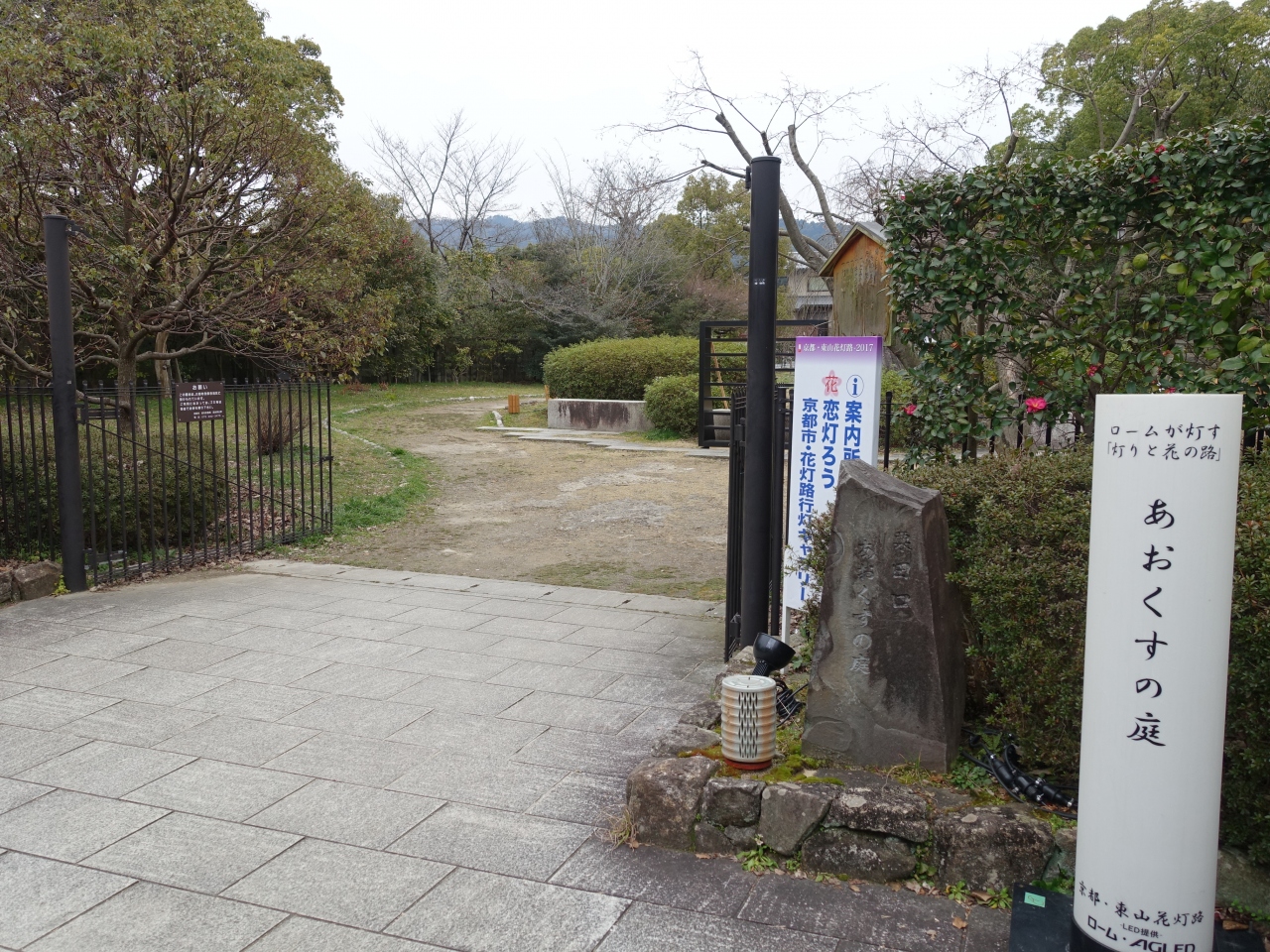 京都の名所の一つ、知恩院の北隣に青蓮院門跡があり、またその北隣に、あおくすの庭があります。中央にしだれ桜があり、桜の季節ならお花見客もいそうですが、当日は、ほとんど人がいませんでした。お寺回りや、祇園の人の多さに疲れたら、一休みできる場所です。