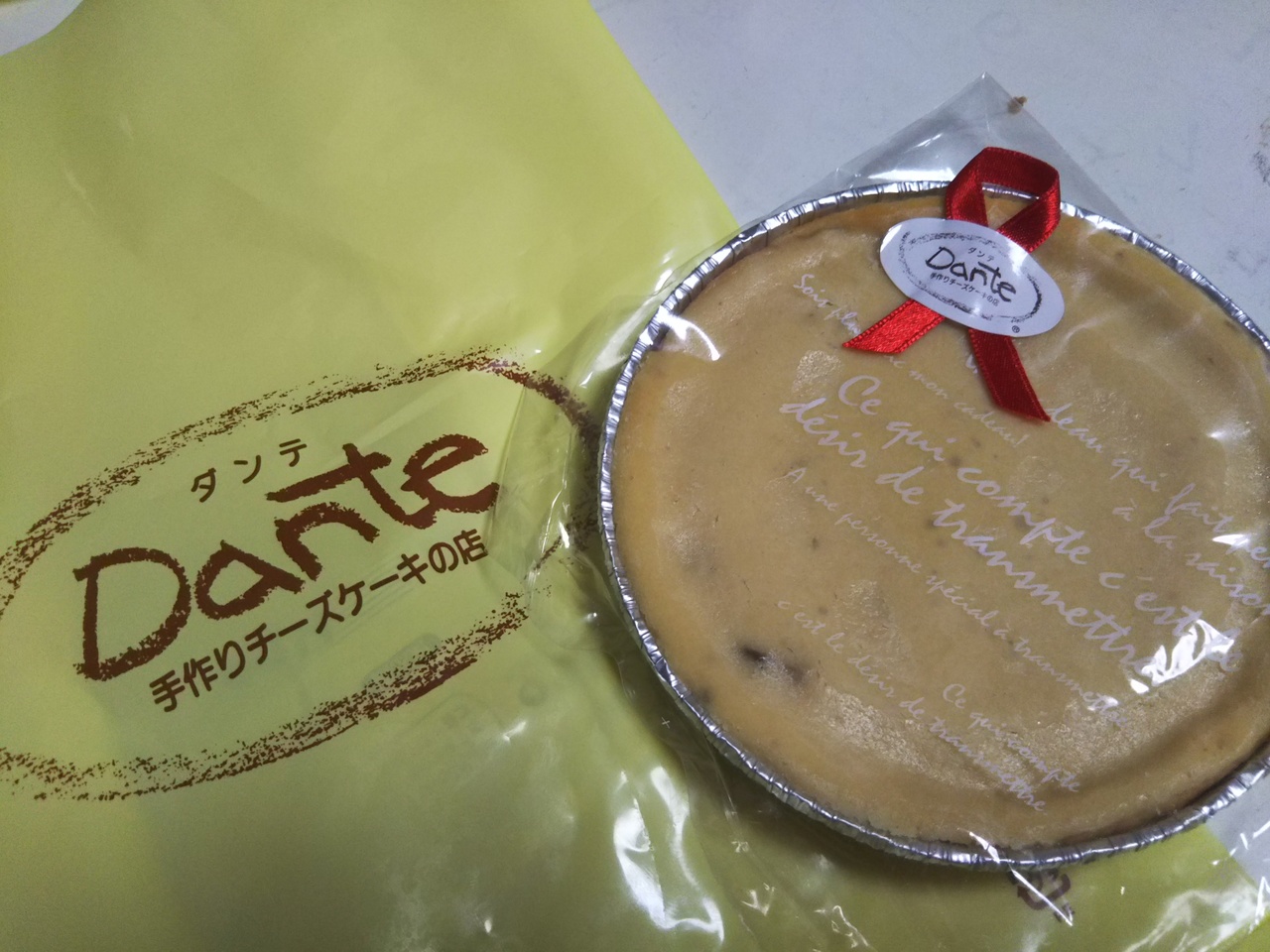 浦和パルコにあるチーズケーキのお店のダンテに行きました。濃厚ですが食べやすい美味しいチーズケーキがあります。今回は自分ように薄くてかわいいチーズケーキを買ってきました。思っていたより味がこくて二回に分けて食べました。