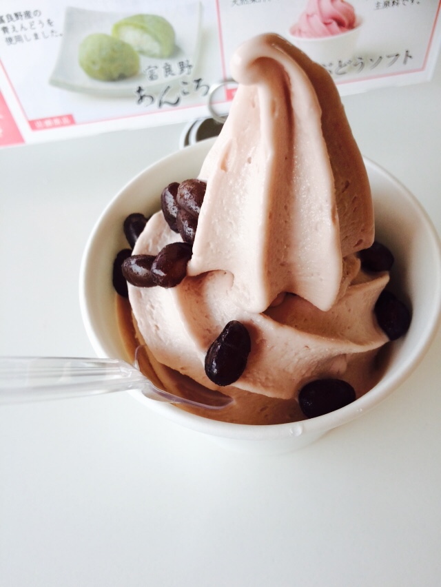 ソフトクリームも盛りがたっぷり。店内からものどかな眺めが見えるので、