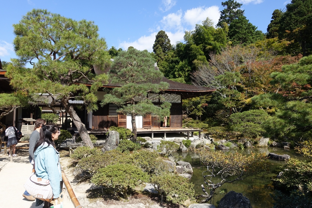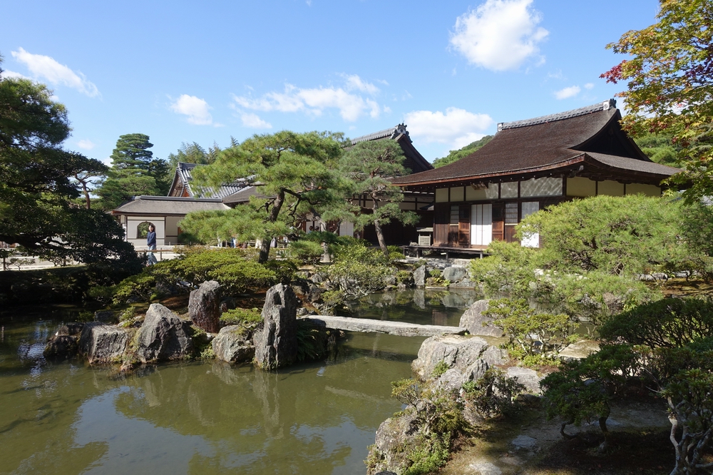 観音殿(銀閣)のイメージが強いこともあって、ここは写真を撮ったりしないでさらっと通り過ぎる人も多いですね。南西方向から近くで見れるほか、南東方向から池越しに見る東求堂も趣があっていいですよ。