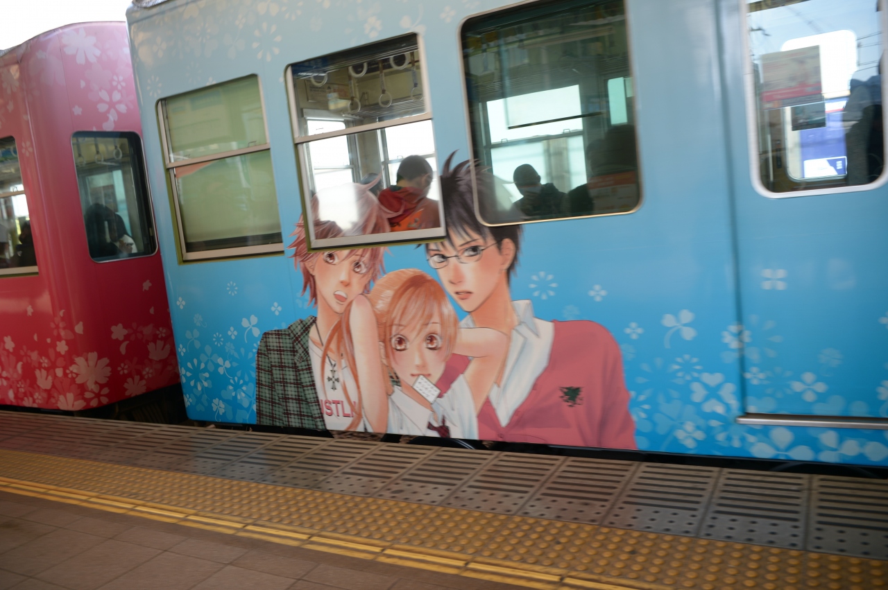京都市営地下鉄と相互乗り入れしているので、京阪車両なら三条駅から浜大津まで直通ですが、地下鉄に乗った場合浜大津へ行くには御陵駅で京阪電車に乗り換える必要があるので注意が必要です。坂をぐんぐん上ったり、浜大津駅手前では路面電車になったりと、とてもおもしろい路線です。沿線には古い建物も残っていて車窓風景も楽しいです。それと、石山坂本線には「ちはやふる」のラッピング電車が走っていました。