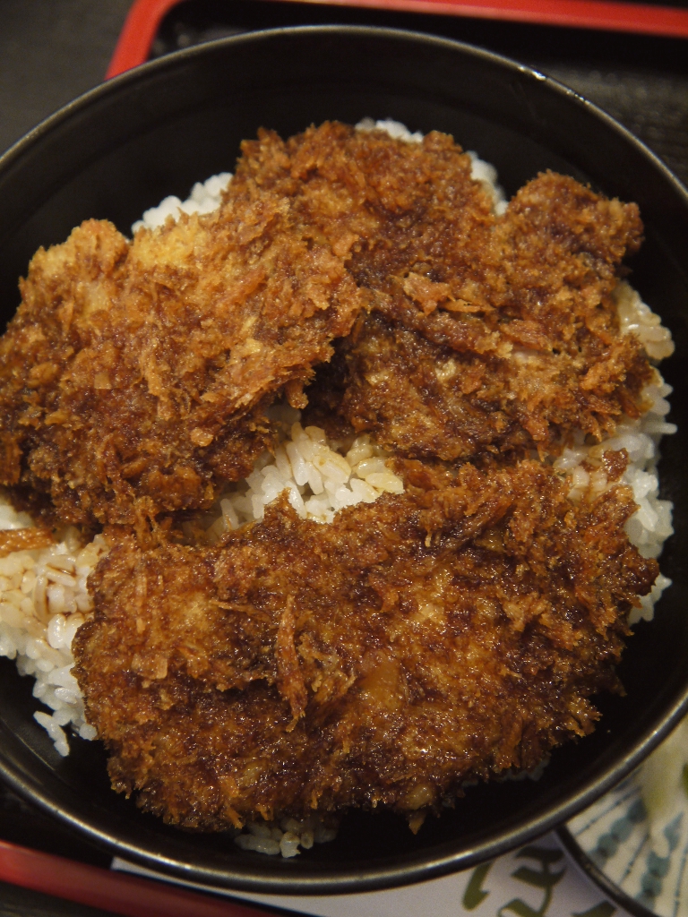 当店のは、薄めにスライスした豚肉のカツが、ライスの上に3枚トッピングされていた。