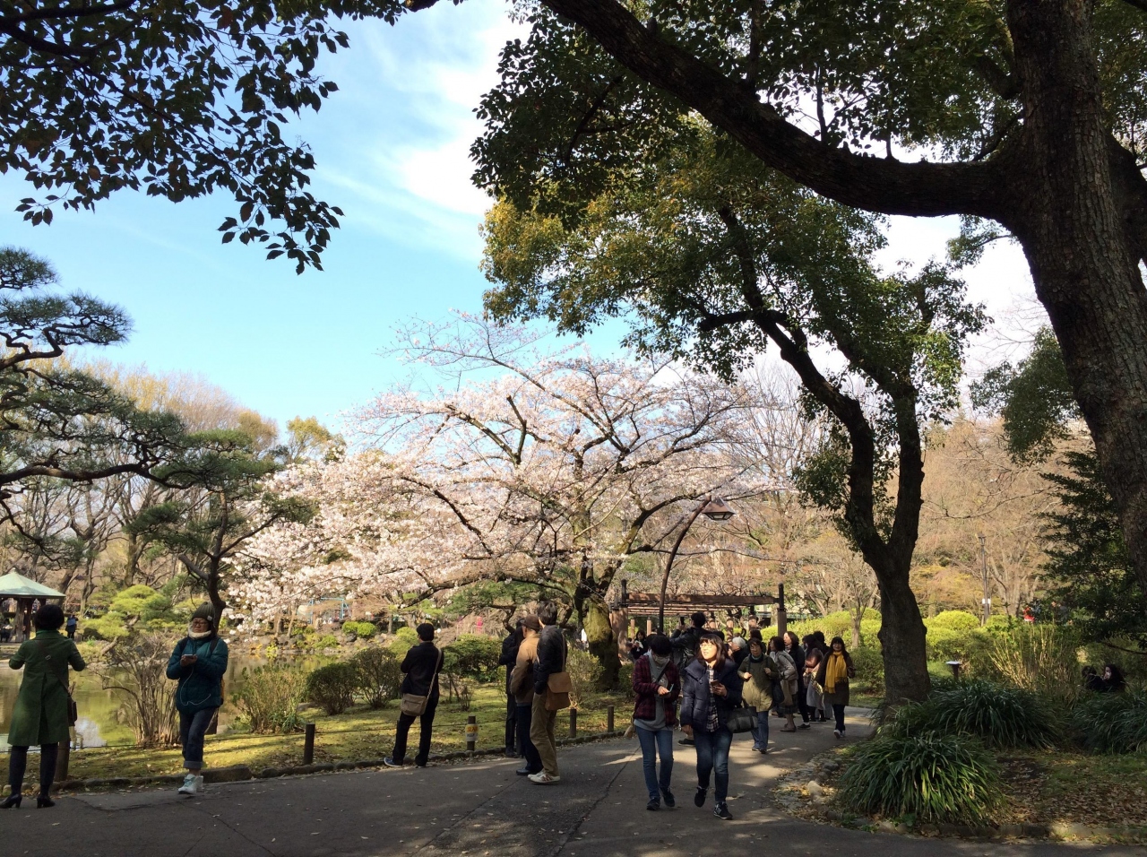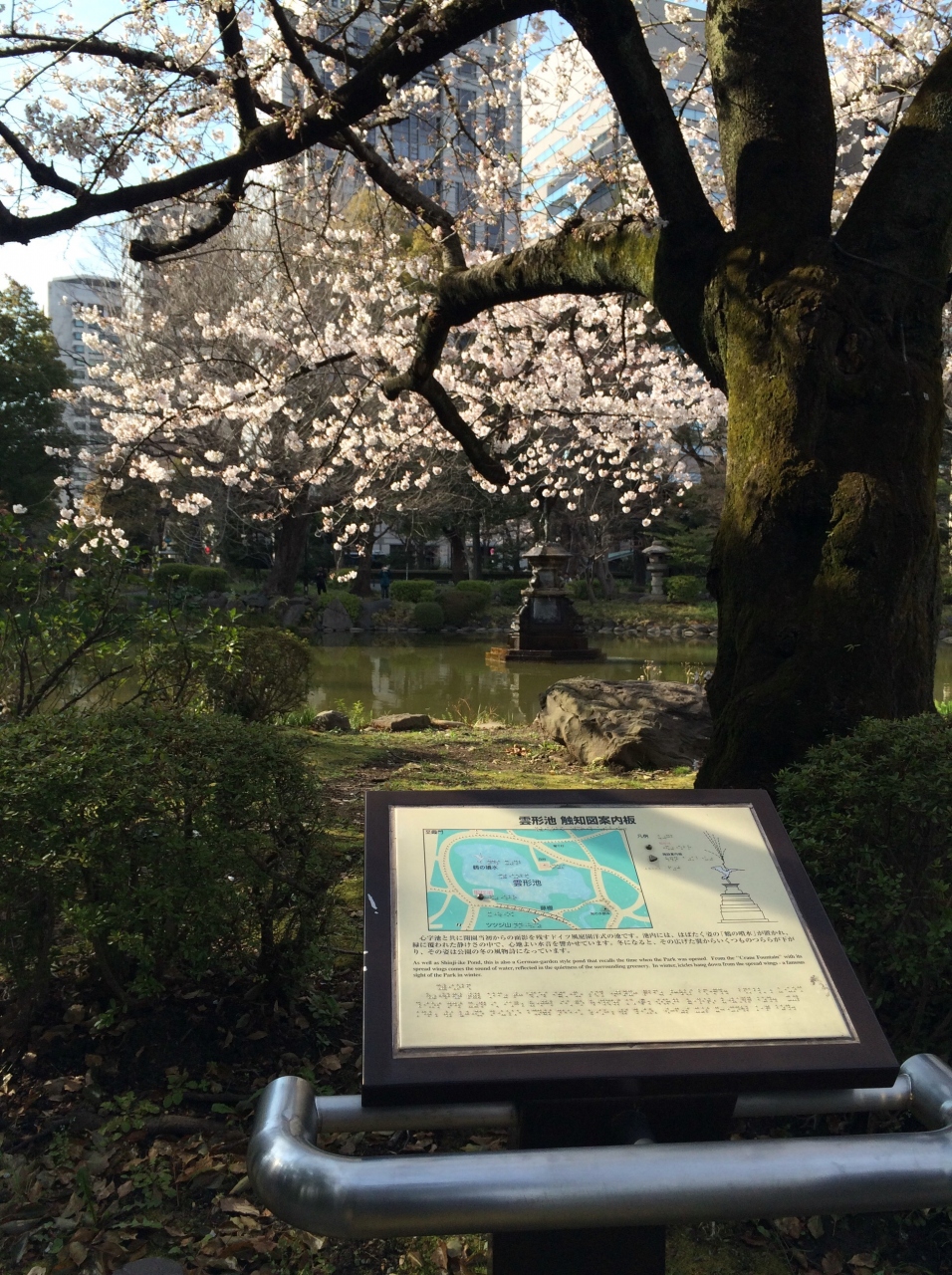 あと中央にある池、雲形池周辺の桜ももう見頃だな