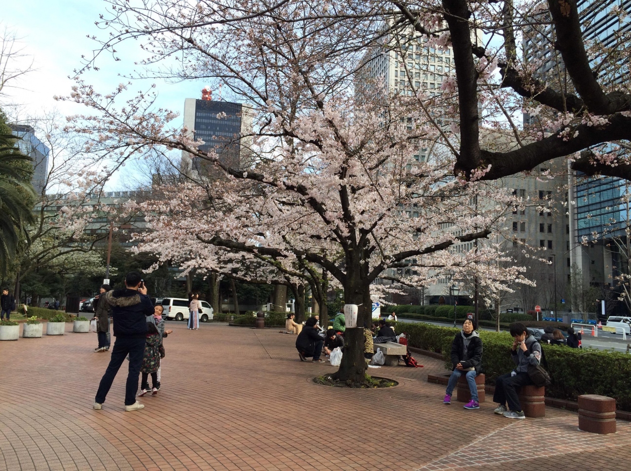霞ヶ関がわのかもめの広場前の桜はもうすぐ満開かな