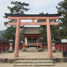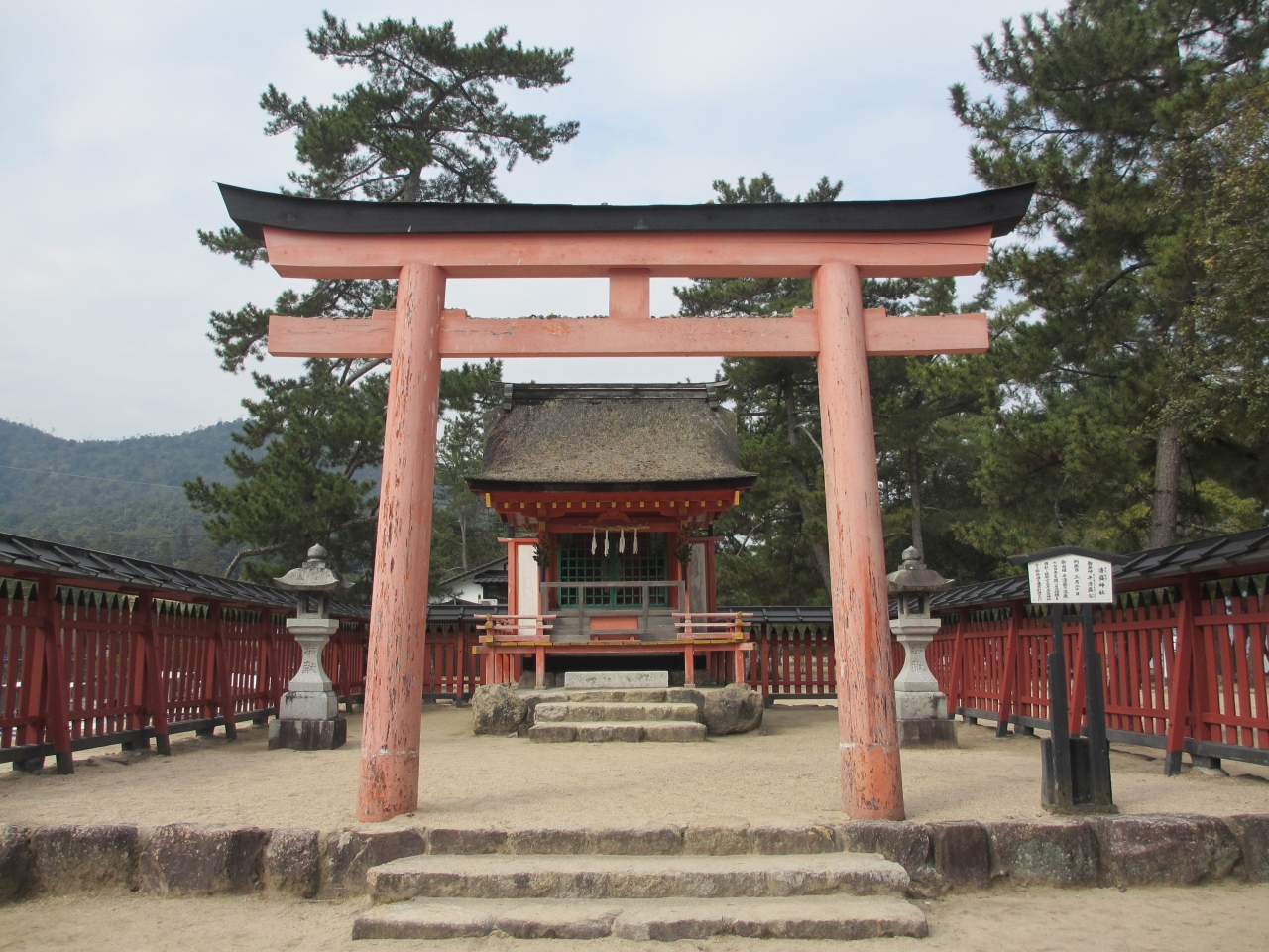 厳島神社から5分ほど、松林が続く西の松原近くに建っています。平清盛の遺徳を称えるために、没後770年たった1954年に創建されました。歴史ある宮島の建造物の中では比較的新しい建物です。亡くなって770年してから建てられるなんて、宮島の住民がいかに清盛を称え信仰しているかを証明している建物だと思います。厳島神社から清盛神社まで歩いていくと、海上に建つ大鳥居が異なった角度から眺めることができ、大鳥居のいろいろな姿を楽しむことができます。