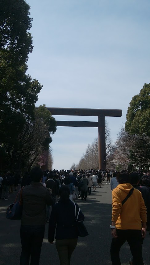 九段下駅を地上に上がって、靖国通りの坂を上っていくと靖国神社の参道が現れて、その入り口部分に圧倒的な存在感をもって、こちらのの鳥居が現れます。その姿は、華美な装飾は一切ないですが、さすが靖国神社の一の鳥居だけあって荘厳な姿であります。その高さは25mもあって、現在の鳥居は40年以上前の昭和49年に再建されたものであって、それまでは大正時代に建てられた鳥居がありましたが昭和18年に撤去されていました。
