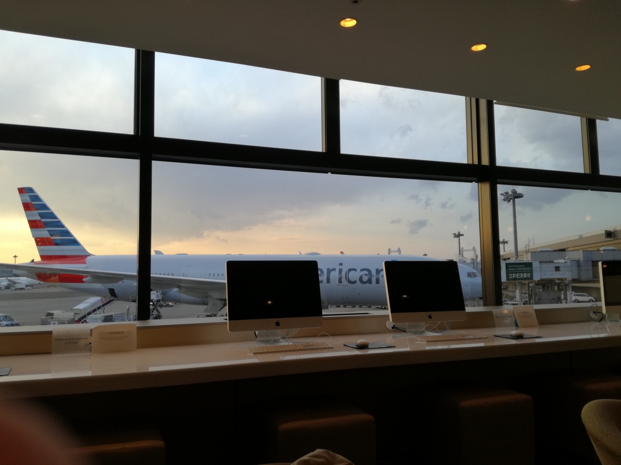 第二ターミナルのサテライトから出発で、しかもサクララウンジがあいにくお休み期間だったので、こちらを利用しました。フロアから1階下がった2階にあります。エスカレーターかエレベーターでどうぞ。おすしとかもあって、日本食にさよならできました。シャワーもあるようです。