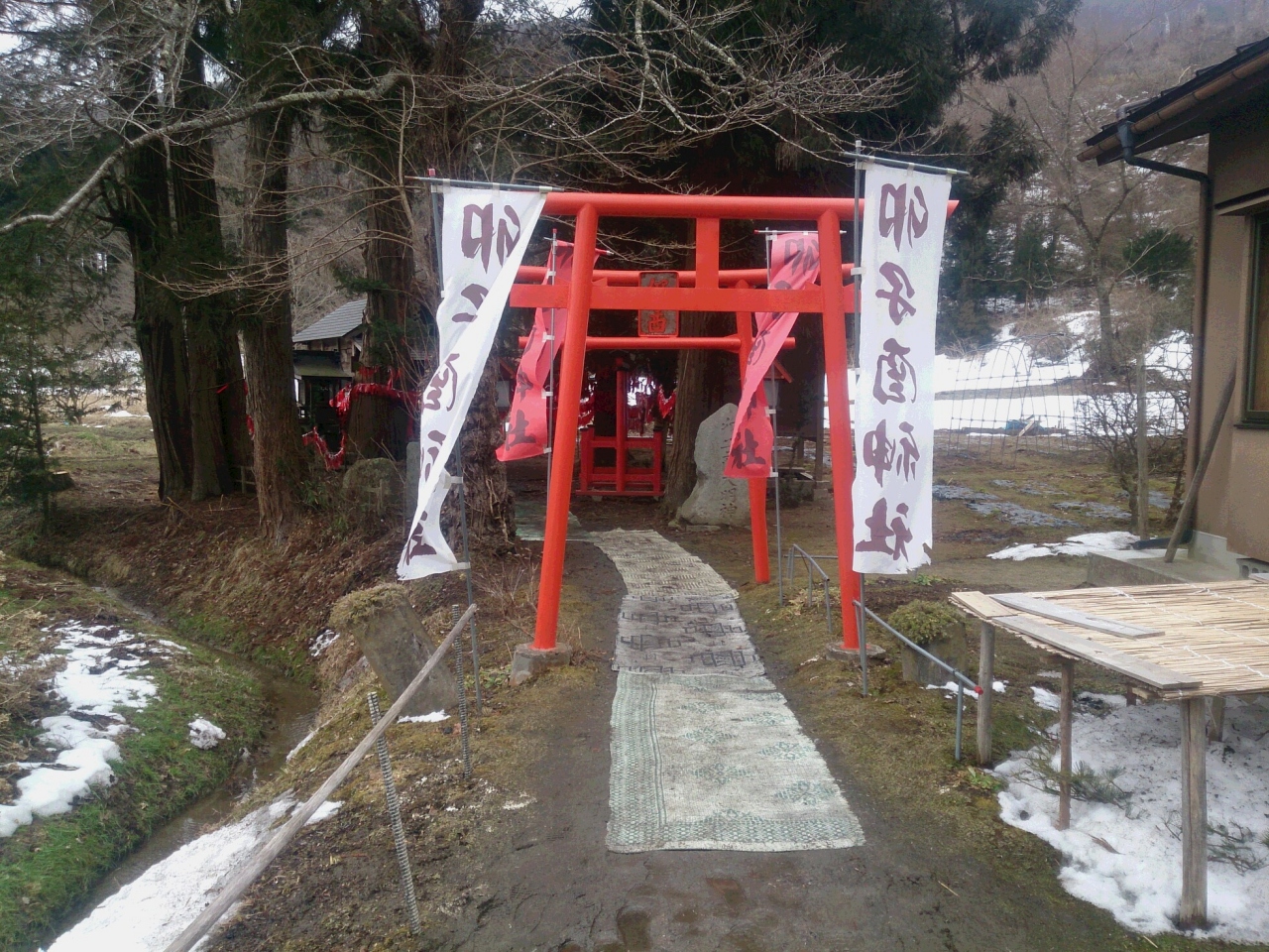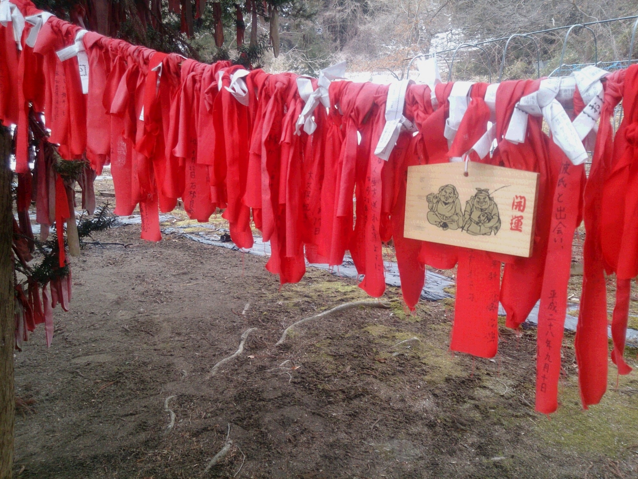 遠野の駅のある中心部から車で10分ほど、釜石自動車道に乗るインター方面にある神社です。近くには愛宕神社があり、駐車場も広いです。少しわかりづらい場所ですが、赤い布が、たくさん見えるのですぐにわかります。赤い布に囲まれた小さな無人の神社です。不気味な感じがしますが、恋愛成就の神様が祭られています。左手だけで布を結ばないとご利益がないので、チャレンジしてみましょう。
