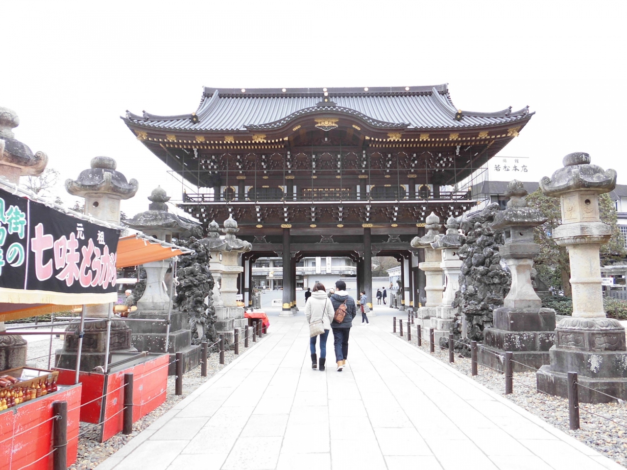 初めての成田山新勝寺で、まず初めに総門を通りました。普通のお寺の山門と違うのかよく分かりませんが、総門というそうで成田山の表玄関になります。
