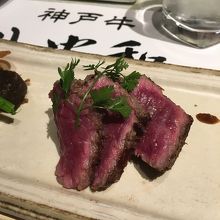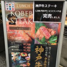 神戸三宮駅から歩いてすぐ、地下にあるお店です。ランチ時間に伺いました。こちらのお店は神戸牛のみを出しているお店。一番安いランチを注文。1500円の神戸牛5切れです。ランチタイムはプラス800円のごはん、サラダ、スープが無料でついてくるのでお得です。男性は物足りない量だと思いますが、お安く神戸牛を食べるには向いています。