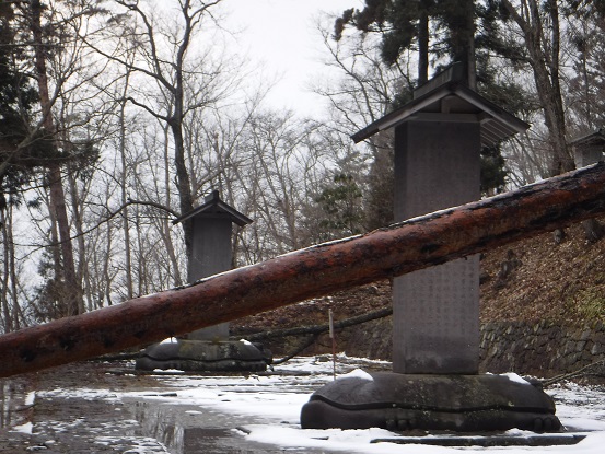冬場はあまり訪れる人がいないのか、大木が折れてそのままの状態でした。雪が残るぬかるんだ道を足元を注意しながら歩いたので、四代と八代まで行かなくても1時間近くかかりました。