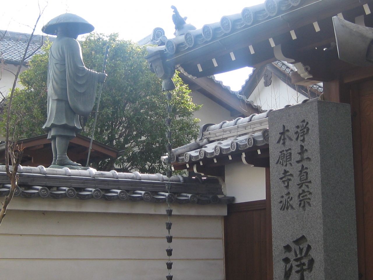高槻の文学の里古曽部の日吉神社参道横にある浄土真宗本願寺派の寺院。創建は不詳、宗円によって1560年に再建されたといわれている。高槻の歴史散歩道のコース上にあるのでいろいろな遺跡や寺院、神社を巡るときに尋ねると良いと思います。