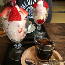 季節のパフェはいちごパフェで、飲み物をプラスしてお値段は1000円でした。