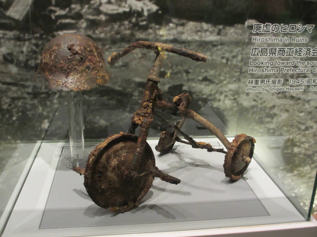 原爆を落とされる前と後の広島の様子、被爆者の遺品、爆風や火から逃げ惑う人々の写真や絵画などが展示されています。目を覆いたくなるものもたくさん展示されています。資料館を巡り出口に向かう頃には、言葉では表せない無念さがこみ上げてきます。訪れた時は本館が工事で閉館中だったことと春休み中ということで、多くの家族連れと海外からの観光客でゆっくり見学できない状態でした。それだけ二度と繰り返してはいけない原爆被害の悲惨さと平和の尊さに関心があるということだと思います。世界中から戦争が無くなることを願わずにはいられません。
