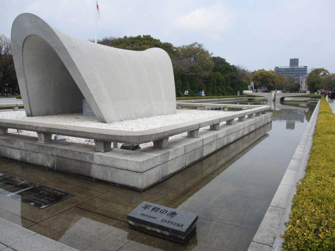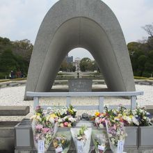 30万人の原爆死没者の名簿が納められています。慰霊碑は犠牲になった方たちの霊を雨から守るとの思いから、埴輪の家型をしています。毎年8月6日には平和記念式典が行われています。正面に建つと原爆ドームと平和の灯を一直線上に見ることができます。今の平和は、亡くなった多くの方たちの犠牲の上に成り立っているものだということを再確認しました。ぜひ訪れ、平和について考えてほしいと感じました。