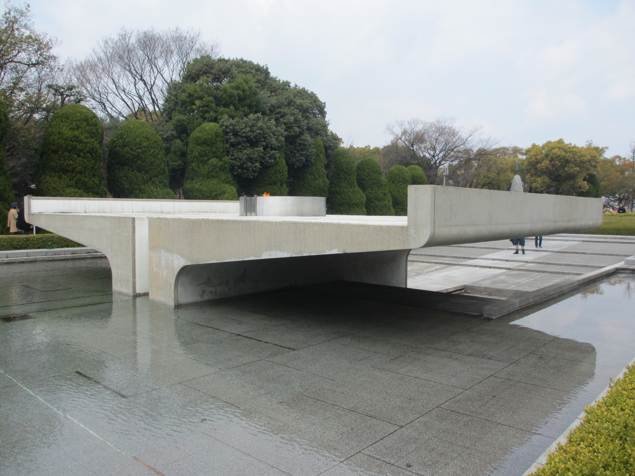 反核と平和のシンボルとして平和記念公園内に建っています。手首を合わせ、手のひらを空に広げた形の大きなモニュメントの中央に火が灯っています。1964年に灯が点火されて以来、核兵器が地球上からなくなるまで燃え続けるとのことです。現在の世界は、平和の灯の意思とは全く反対の方向に向かっているようで残念でなりません。一日も早く灯が消えることを願っています。