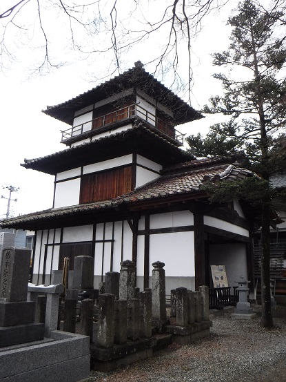 七日町駅近くの阿弥陀寺に、現存する鶴ヶ城唯一の遺構 御三階が移設されています。御三階の文字どおり、外観は三階建ての建物ですが実は内部は四階建てになっており、秘密部屋になっているそうです。床板は歩くと音が鳴る鴬張り、最上階へは引き上げ式の梯子があるらしいです。とても興味を引く建物ですが、残念ながら中を見ることができません。せめて写真や図解があればいいのにと思います。