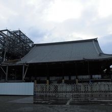 東本願寺の2つの大きな建物のうちの1つです。ですが、行った時はちょうど工事中で閉鎖でした。とはいえ工事中で見れないというタイミングで来るのは珍しいことであり、そういう意味ではプレミアだったと思います。普段見られない光景を見るのは幸せなことだと割り切れています。