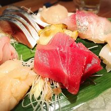 カウンターの上には新鮮な食材が並んでいて、いかにも炉ばたという雰囲気を醸し出しています。