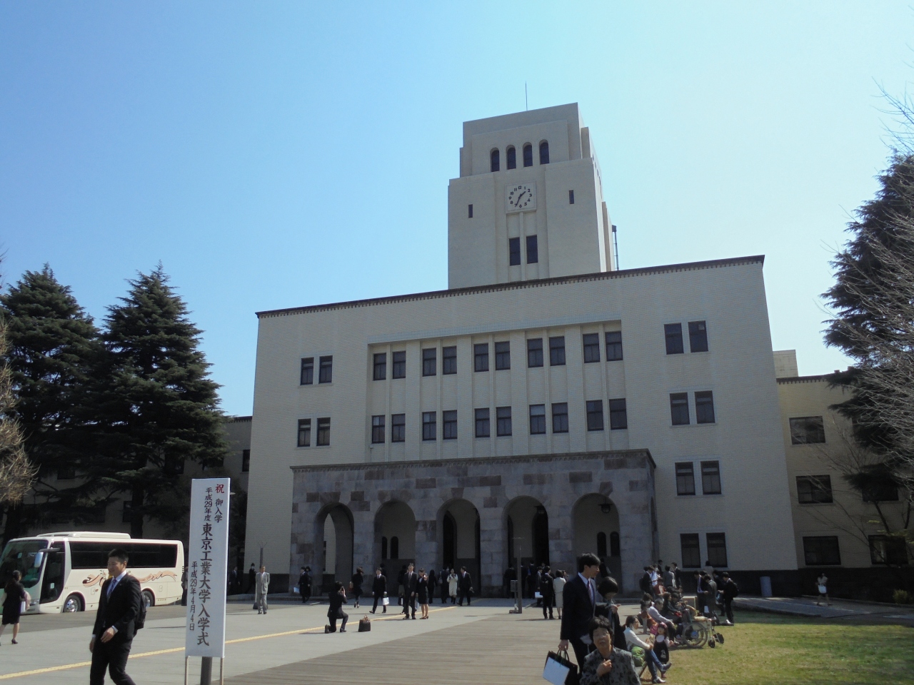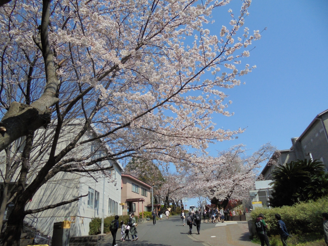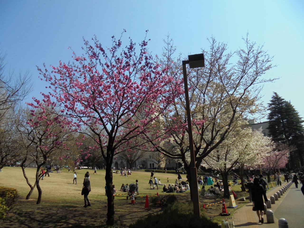 4月の初旬に行きました。この日はちょうど入学式が行われていたのでキャンパスは賑やか。入学式に相応しく構内の桜は満開で、平日にもかかわらず学生以外の人たちも多く訪れていました。キャンパスは一般に開放されていて芝生の広場などで花見を楽しむことができます。