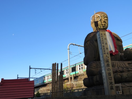 南千住駅の近くにあるお寺です。もともとは、すぐ近くにある小塚原回向院の一部でしたが、のちに延命寺として独立しました。常磐線と日比谷線の高架橋に挟まれるようにあるため、走り抜ける電車の轟音が短い間隔で聞こえてきました。今は喧騒の地ですが、小塚原刑場で亡くなった刑死者を弔う大きな「首切り地蔵」を前にすると手を合わせずにはいられませんでした。