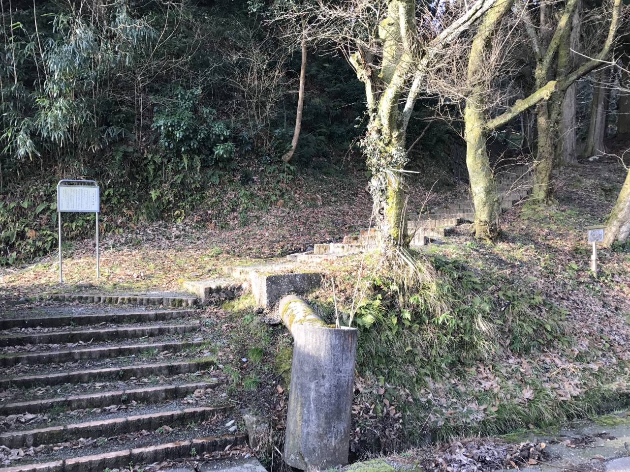 駐車場から山の上へひたすら階段をのぼっていくと、大聖寺を一望できる場所にたどりつきました。このあたりがかつての大聖寺の跡かと思われます。今では土塁や堀らしきあとがわずかに残っているだけで城の面影はほとんどありません。そこがちょっと残念なところ。