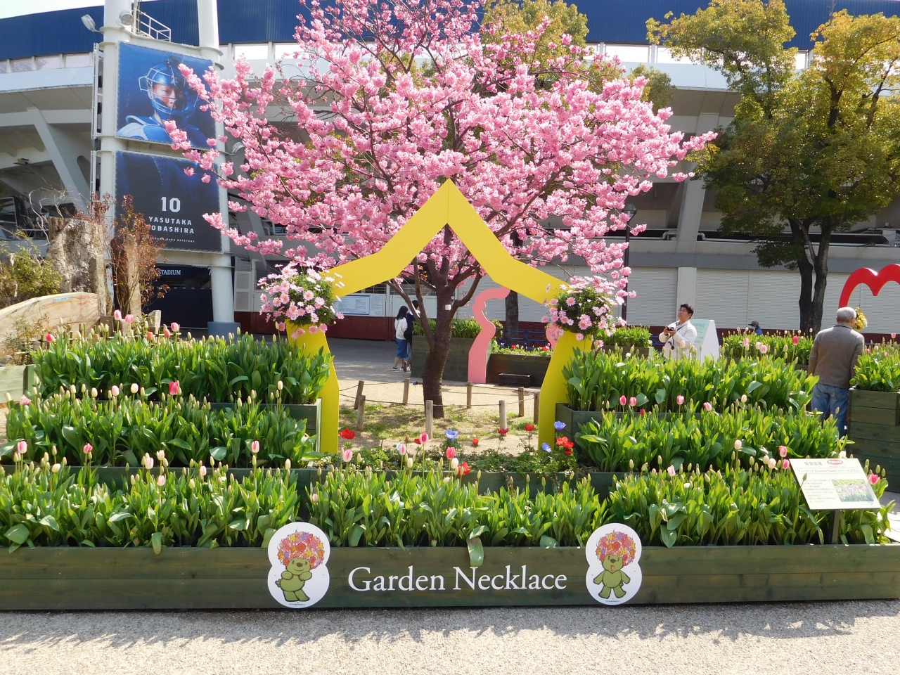 横浜スタジアム前に広がる、広々とした公園で、春にはチューリップが綺麗に咲くスポットとしても有名です。ちょうど「全国都市緑化よこはまフェア」が開催され、フォトロケーションや噴水周りにトピアリーの設置もあり、いつにも増して見所が増えていて、良かったです。また、公園内の日本庭園が、「彼我庭園」と名付けられて、リニューアルオープンしていました。