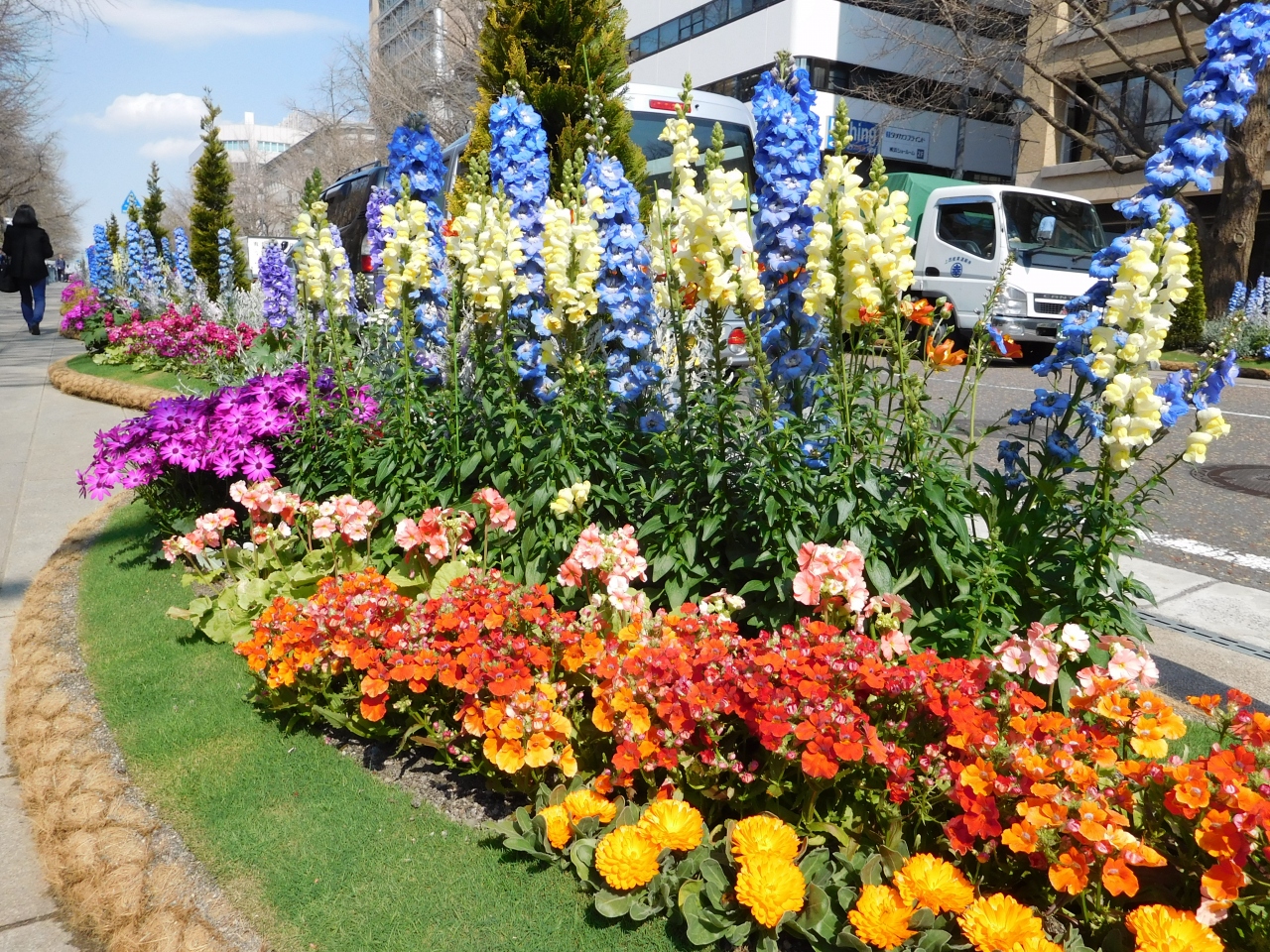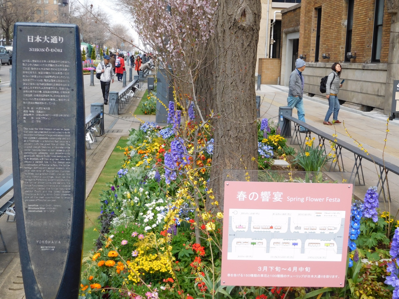 横浜スタジアム(横浜公園)から一直線に伸びる通りで、イチョウ並木が続く道の為、秋になると綺麗な紅葉が見られる事で有名な道です。今年は、「全国都市緑化よこはまフェア」が開催され、道の両側には綺麗な花壇が並んでいて、「日本花通り」になっていました。ちょっとしたベンチもあるので、お花を眺めながら休憩する事も出来ました。春の日差しと共に、綺麗なお花を見ながら、散策が出来て良かったです。