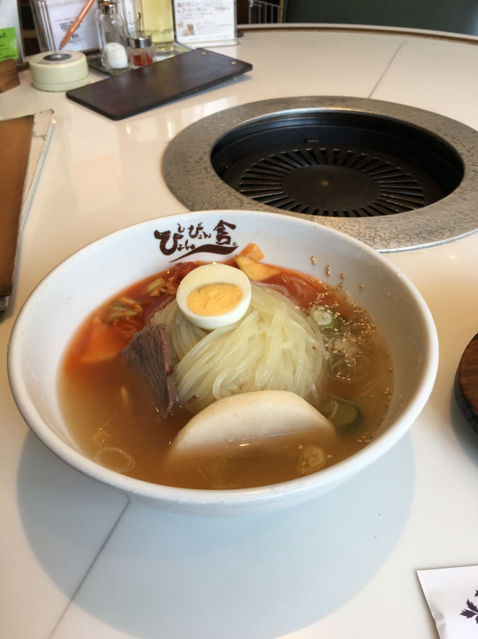 盛岡といえば冷麺という事で、評価の高いぴょんぴょん舎 駅前店に行きました。駅前店とある通り、駅からはすぐのところにお店がありました。お店には11時を少し過ぎた辺りに行ったので、ガラガラでした。辛さを選べましたが、中位の辛さを選びました。それでも少々辛かったので正解でした。他のお店と比較したわけではないのですが、私としては、美味しかった。また来たいと思いました。