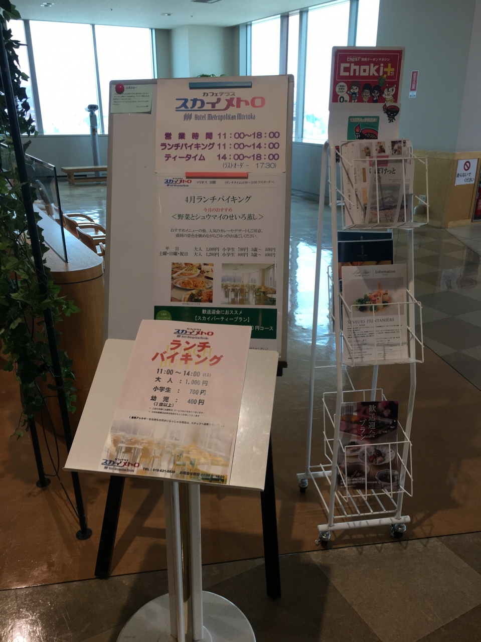 マリオスビルの20階にあります。マリオスビルは盛岡駅からすぐの場所にあります。20階には展望室もあり、無料で行く事が出来ます。平日はランチバイキング大人1000円という事で、そこそこお客さんが入っていて賑わっていました。何より眺めが良いところで食事が出来るのが良いかと思います。