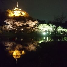 入園料は大人500円。大池の周りを歩きながら夜桜を観賞。途中、雁ケ音茶屋でおでん(6個入り500円)を頂いた。
