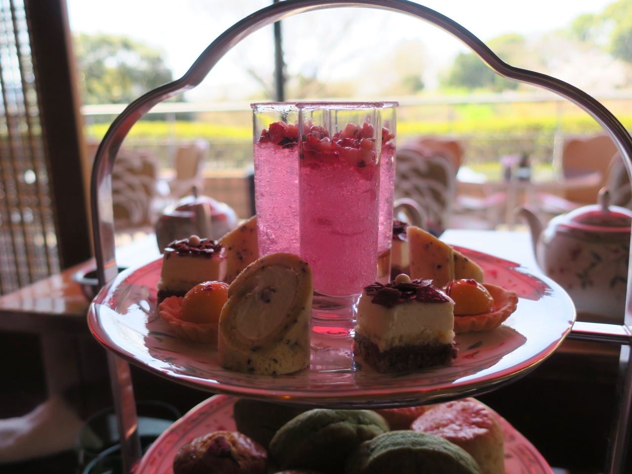 季節限定の桜づくしのアフタヌーンティー(桜とイチゴのゼリー、