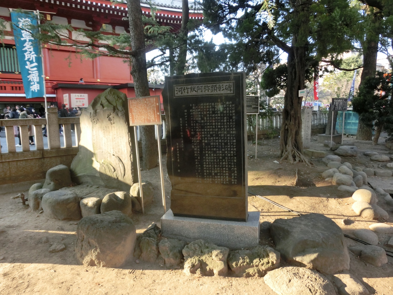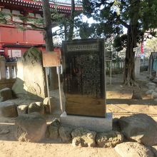 浅草神社の一角、記念碑ゾーンに黒御影石の立派な碑と解説板があった。