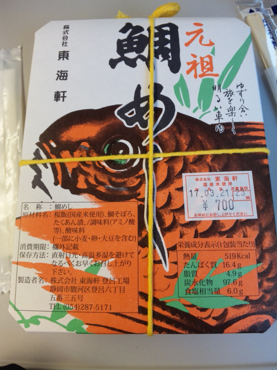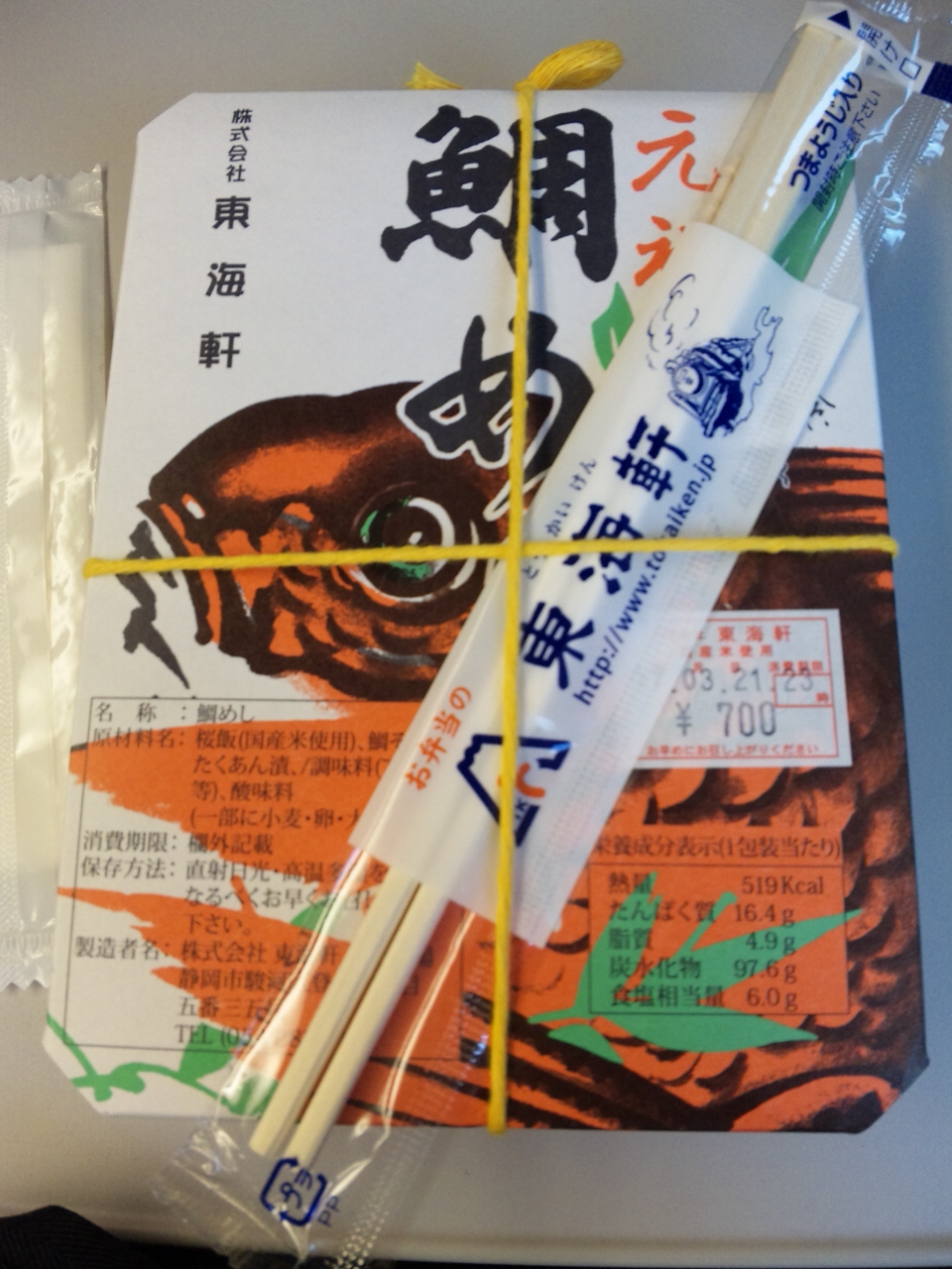 元祖 鯛めし700円を購入。醤油ごはんに鯛そぼろをどっさり載せたお弁当。付け合せは沢庵一切れ、と非常に飾り気の無い品ですが、百十余年の創業当時から変わらない逸品です。ほんのり鯛の甘みが感じられて飽きずに食べれてしまいますよ。鯛めしとおかずを盛り付けた特製鯛めしや、幕の内弁当他、各種お弁当も揃ってて選ぶ楽しさも有りますよ。