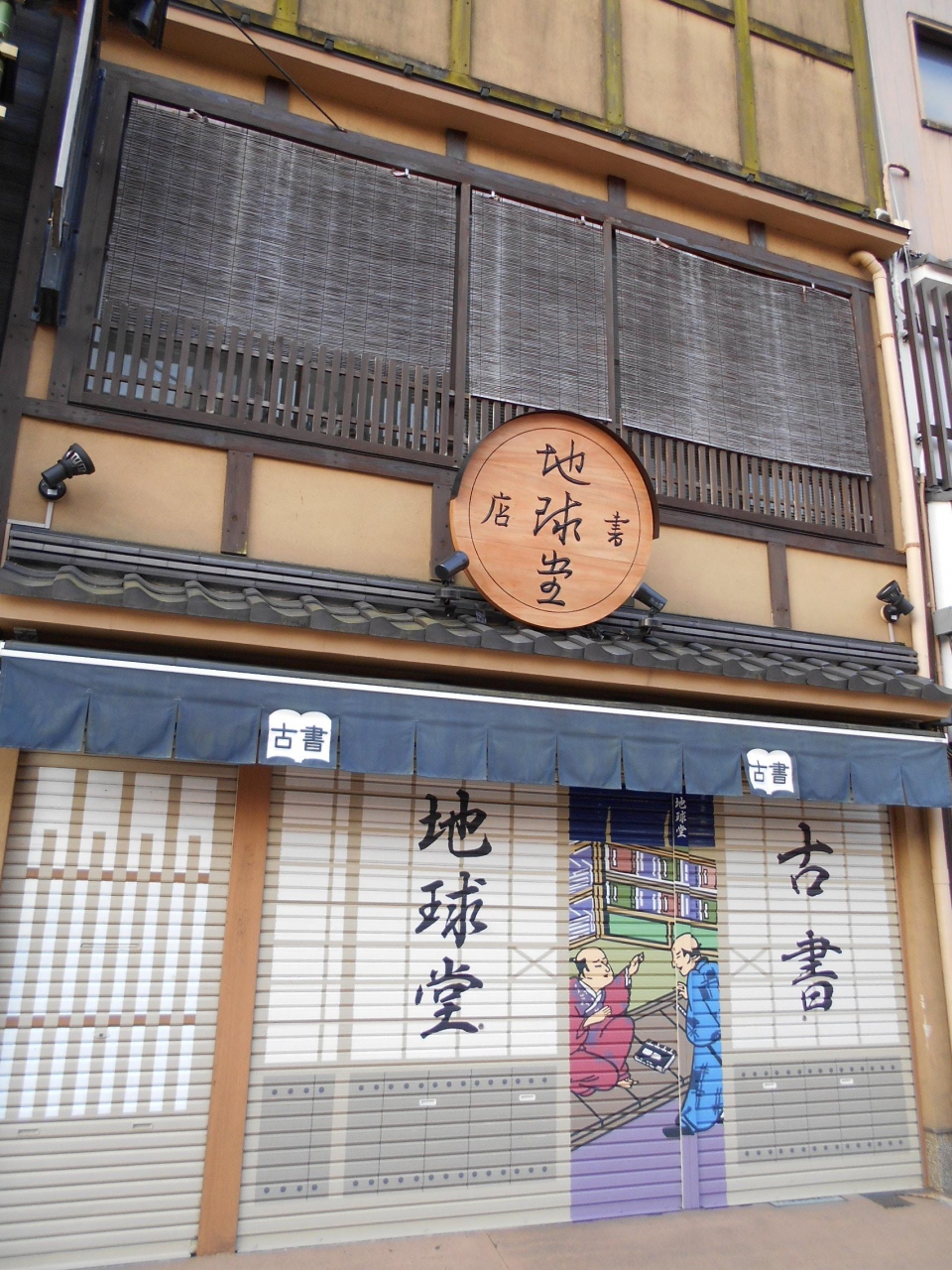 「地球堂書店」は、浅草の「浅草寺」の手前西側に通る「伝法院通り」沿いにある、古書の専門店です。