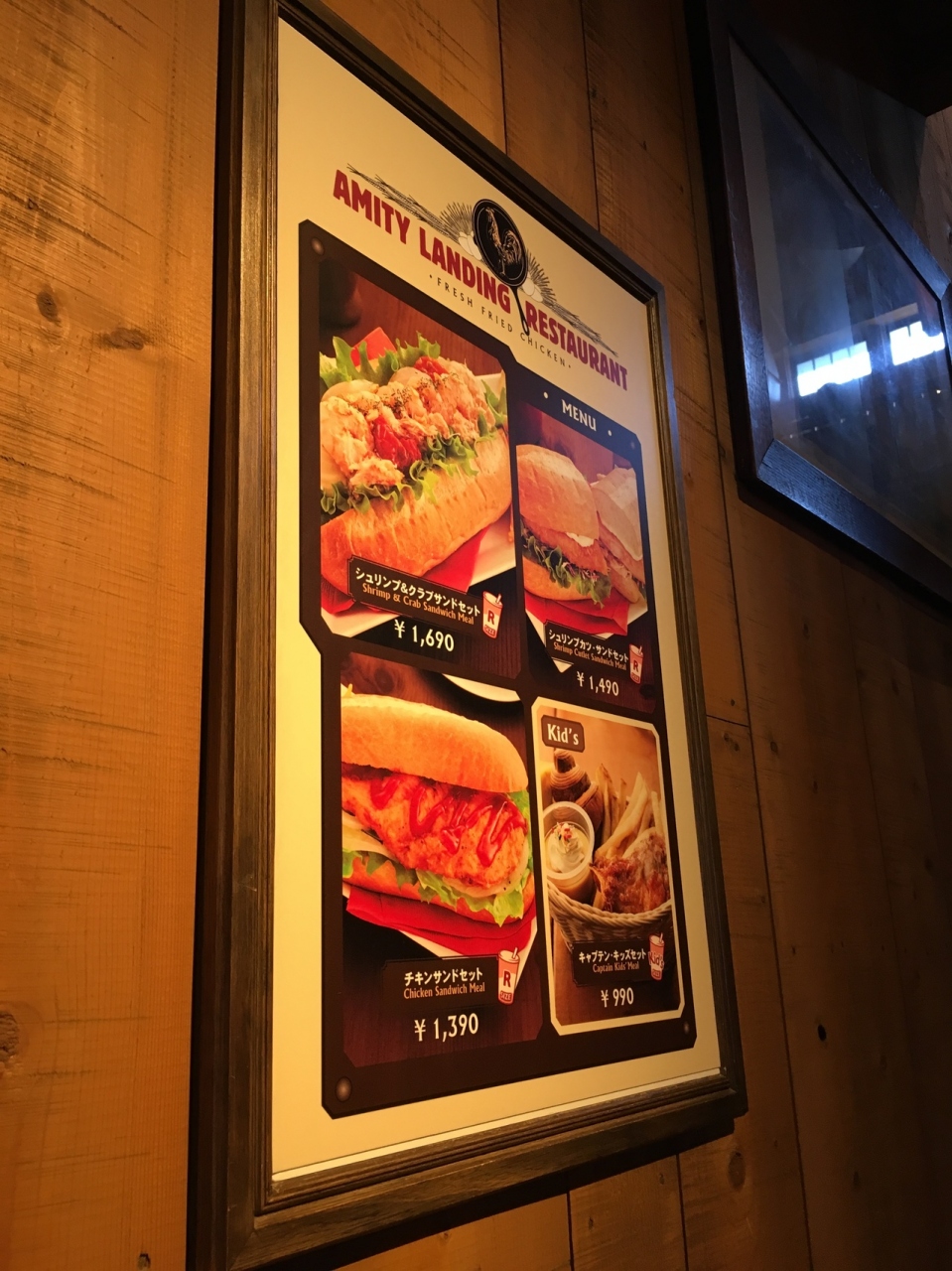ユニバーサルスタジオジャパンのジョーズアトラクションのすぐ近くにあるレストランです。ユニバーサルスタジオジャパン内では割と手頃に食べられるレストランだと思いました。 シュリンプかつサンドセットを注文しました。レギュラーサイズの好きなドリンクをつけれて1,500円しなかったので割と手頃だと思います。ちゃんと座って食べることもでき休憩ができました。