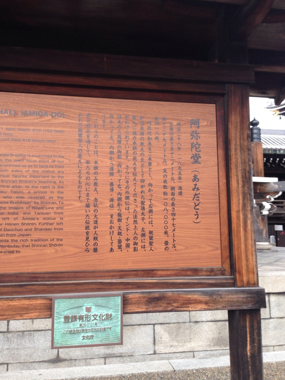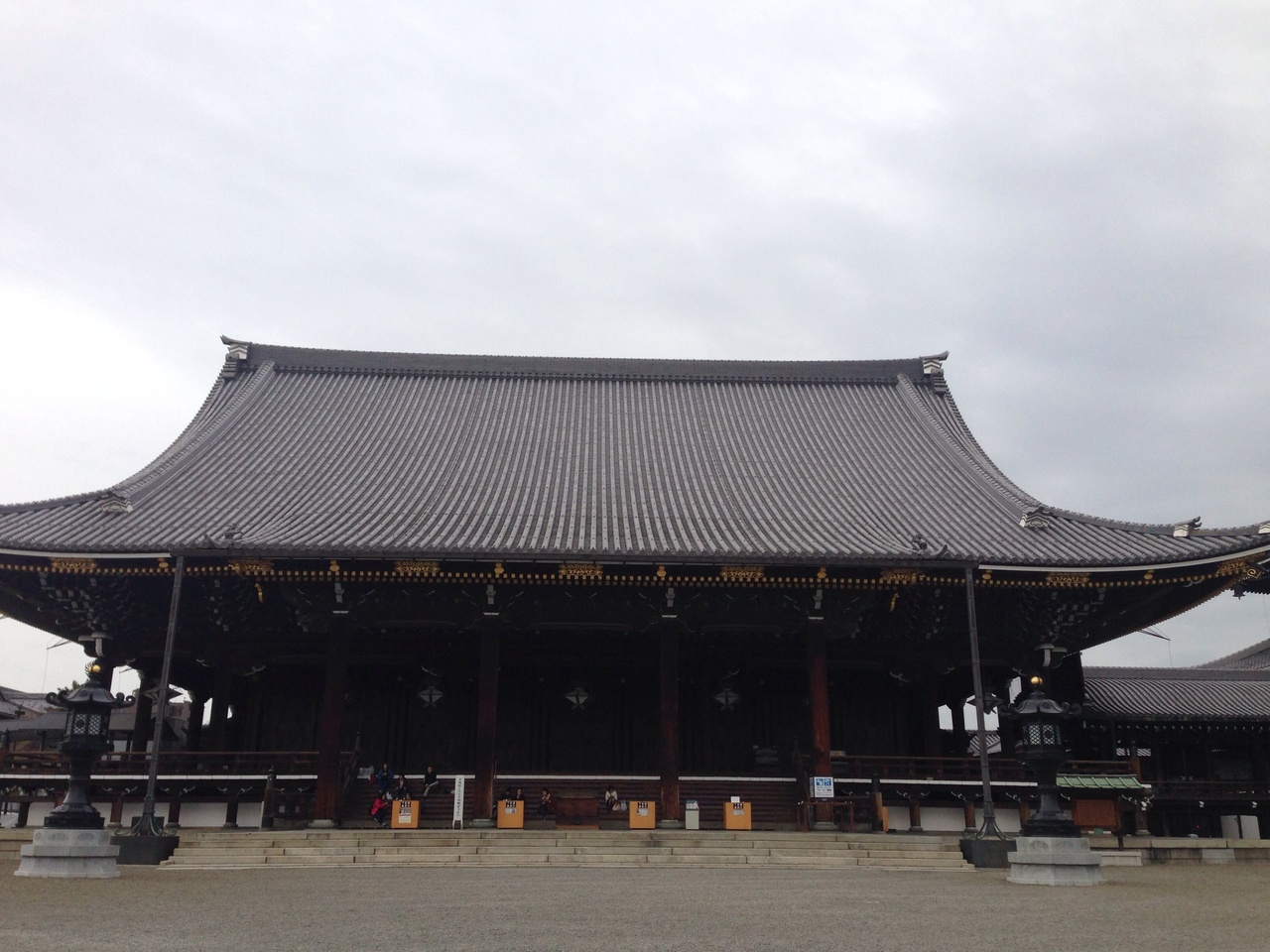 目の前にして何度も『大きい!』を連発してしまいました。それもそのはず 阿弥陀堂は横幅52メートル奥行き47メートル高さ29メートルとビッグサイズ、単純に考えて横幅は50メートル走ができる長さです。凄い!屋根瓦は108,000枚もあるそうです。
