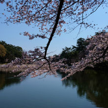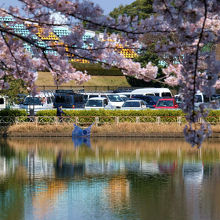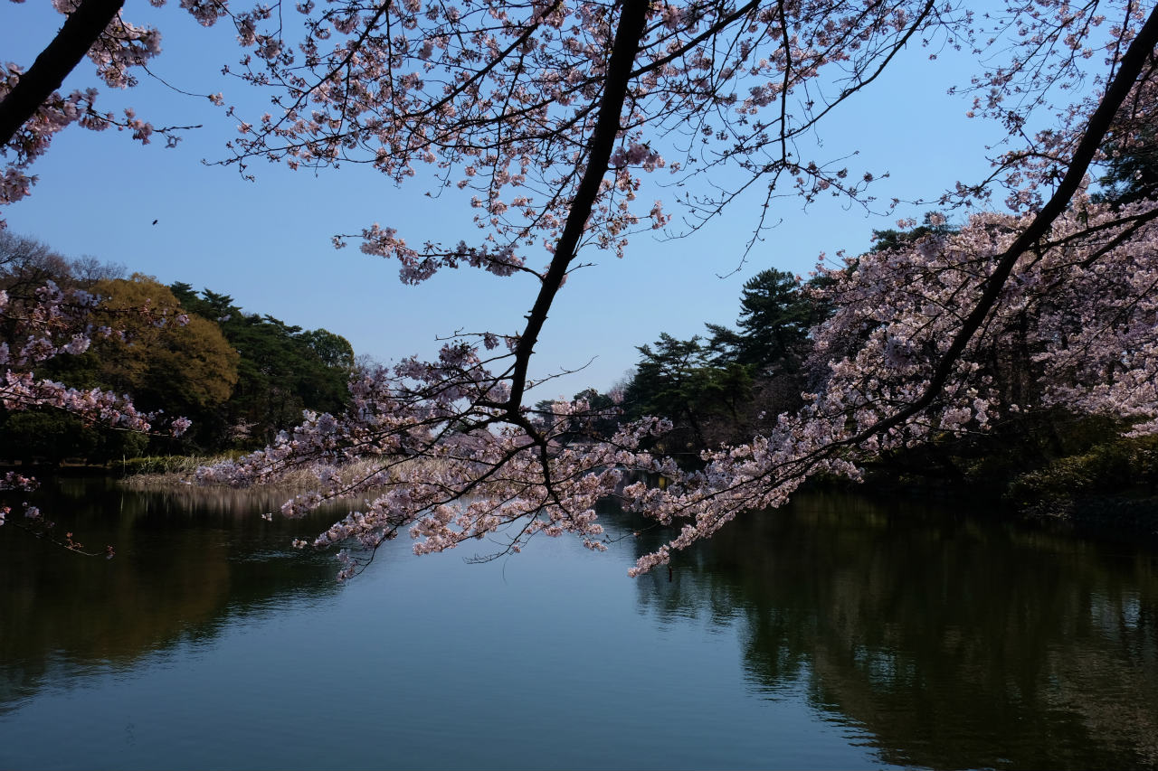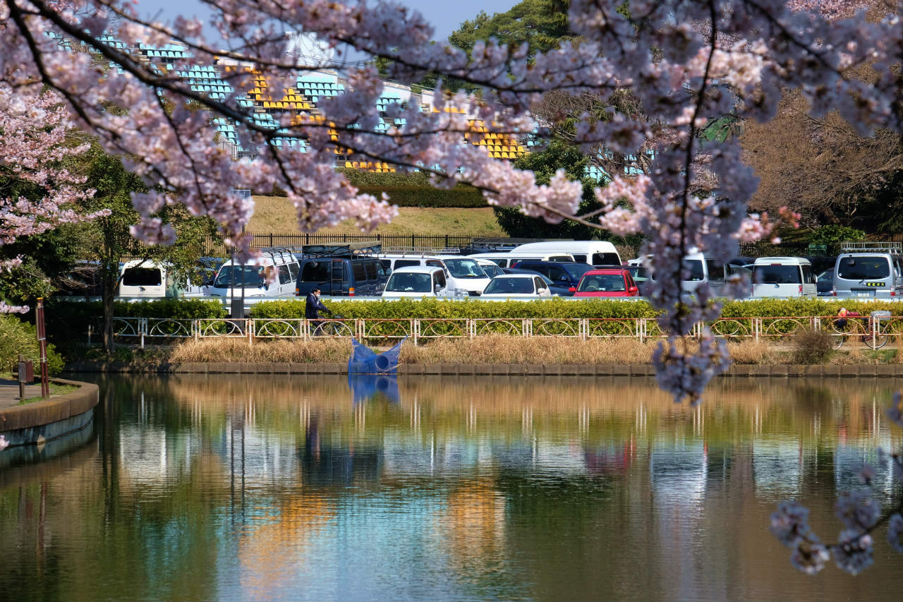公園へ行けました。まづは 池にたどり着き 池に写る桜花を見ながら