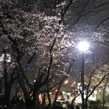 最寄駅は、地下鉄の芝公園駅あるいは都営線の赤羽橋。それぞれ徒歩3分くらいです。年に一度の夜桜見学に来ましたが、18時過ぎには既に花見目当ての人たちで大賑わいです。この公園が他の公園と違うのは隣に東京タワーがあること。桜よりもライトアップされた東京タワーに感動する人も。まあ両方楽しめるので絶対オススメ。是非。